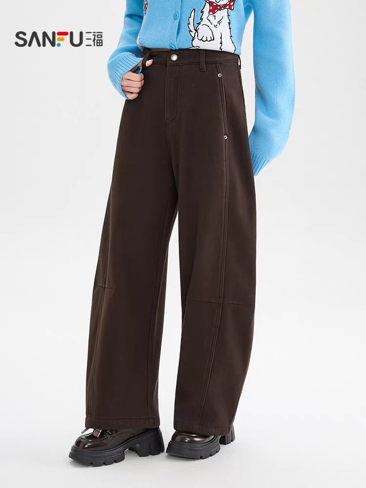三福咖啡色加绒弯刀裤(强推)