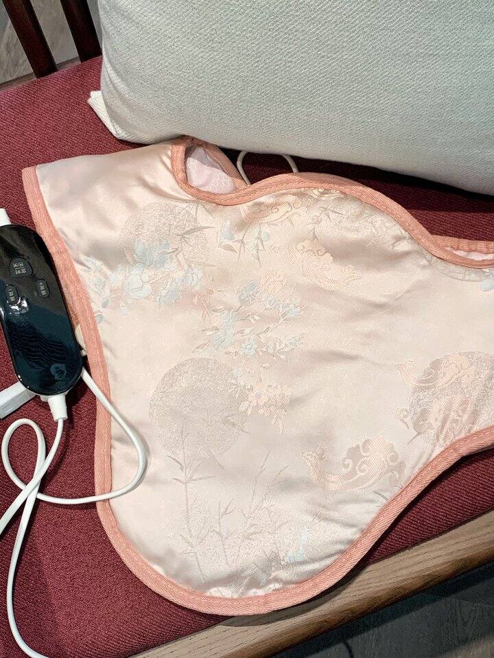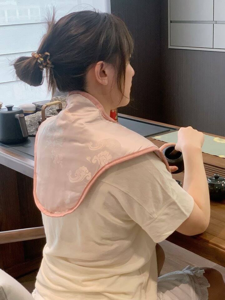 这个小云肩披上正好盖在富贵包那里 插上电可以发热很久,像在给肩颈做热敷spa!夏天办公室内长期开空调,午肩颈很容易受凉,一定要保护好~