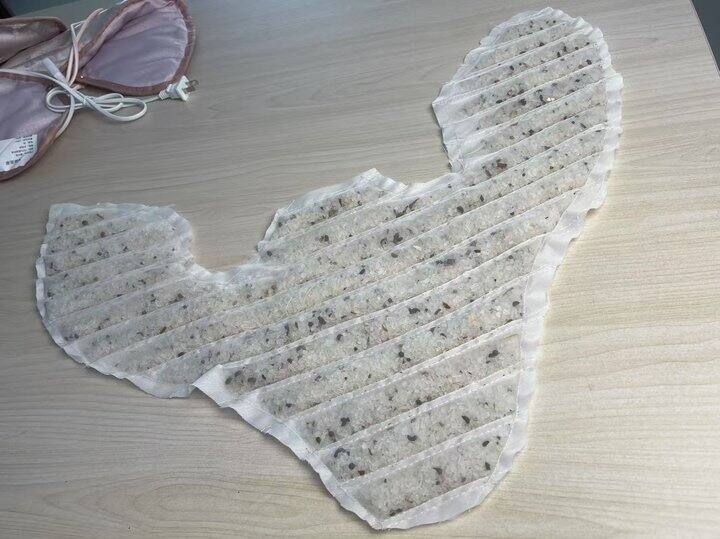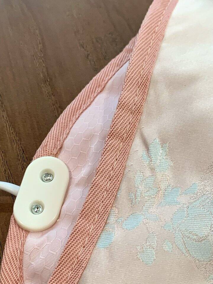 注意:用完记得及时拔掉插头,还有两边尖角位置不会热的哦,暖肩绗缝需避开发热丝,边缘发热丝不密集,前边布线需要绕开开关边缘那里,较其他部位稀疏,胸前片温度没有特别的高,主要集中在后背部温度蔓延过去,这是正常现象的~