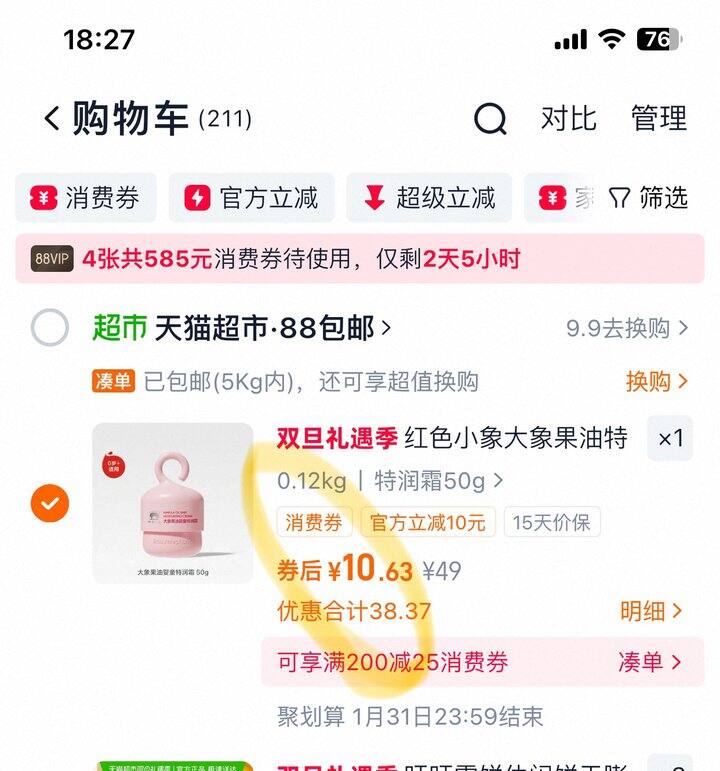 弹淘礼金,收藏,猫超首页点击超级补贴,找到它加购