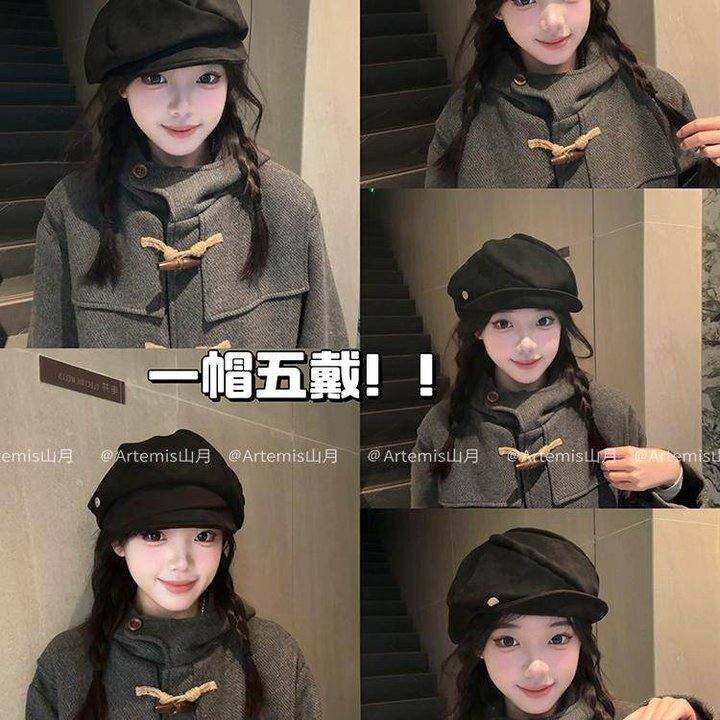 Artemis山月方圆脸百搭麂皮绒渔夫帽八角贝雷帽报童帽大头围显小