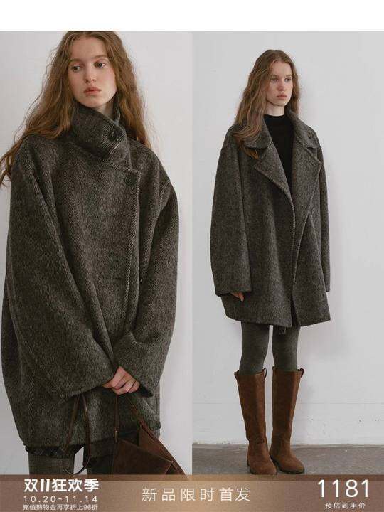 10/31新品 茧型加厚立翻领驼绒羊毛双面呢大衣宽松短款毛呢外套女