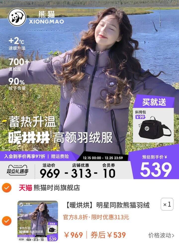 1、【泡泡】明星同款熊猫防泼水羽绒服女https://m.tb.cn/h.7fabE8J弹107礼金,淘金币抵扣23