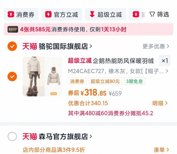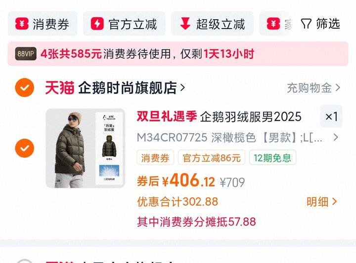 1、【男女同款】企鹅热能羽绒服https://m.tb.cn/h.7fZPRkZ弹95.8礼金,淘金币抵扣15