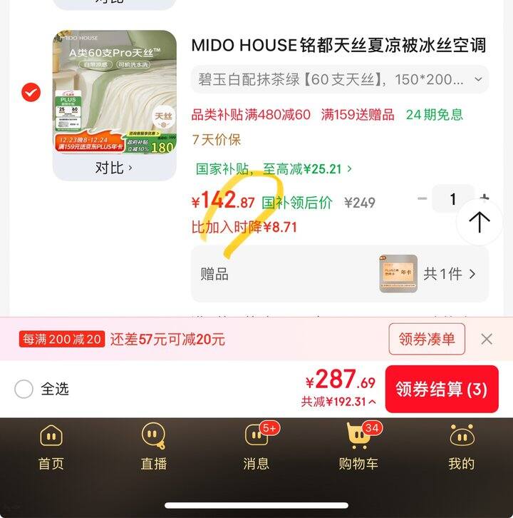 拍下142.87,赠品京东plus年卡