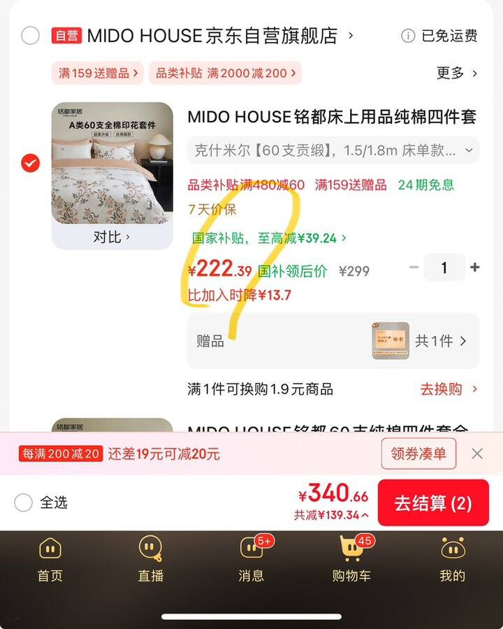 1,床笠被套60支A类四件套220X240https://u.jd.com/A6QHBQu