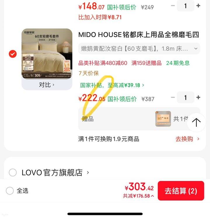 拍下222.39,赠品京东plus年卡