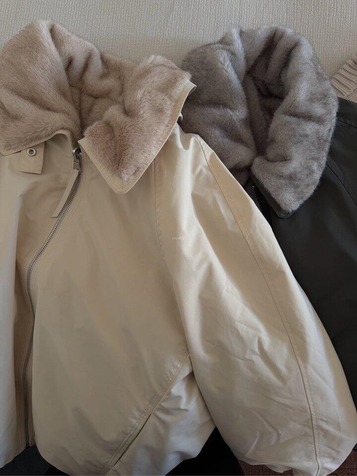 毛茸茸的环保皮草面料,宽松落肩,利落剪裁