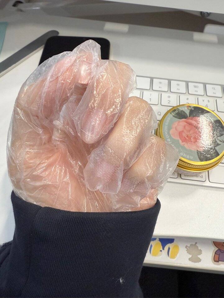 带的一次性手套,更建议那种做蛋糕揉面的一次性医用手套