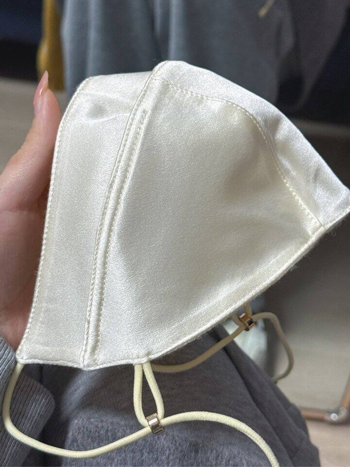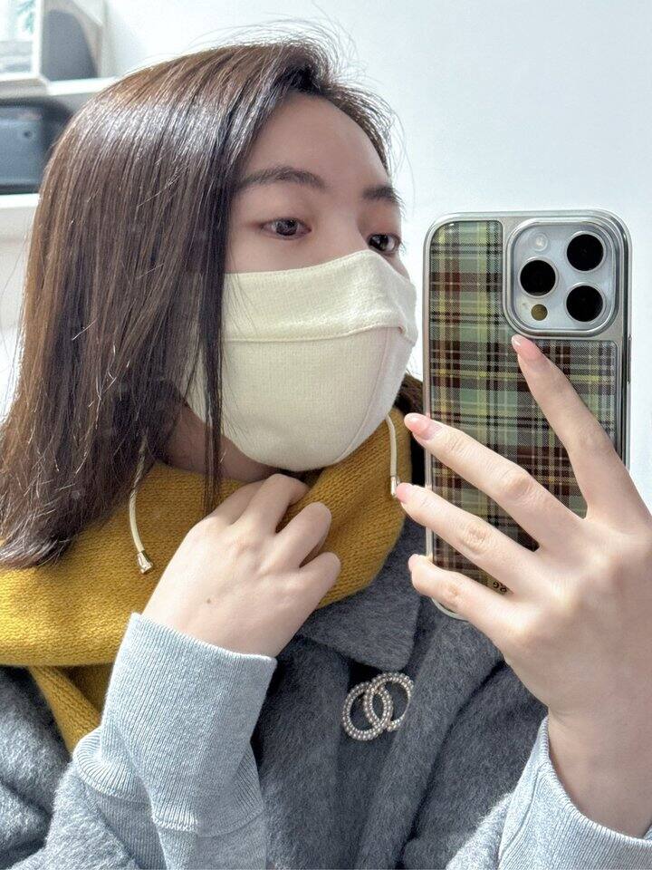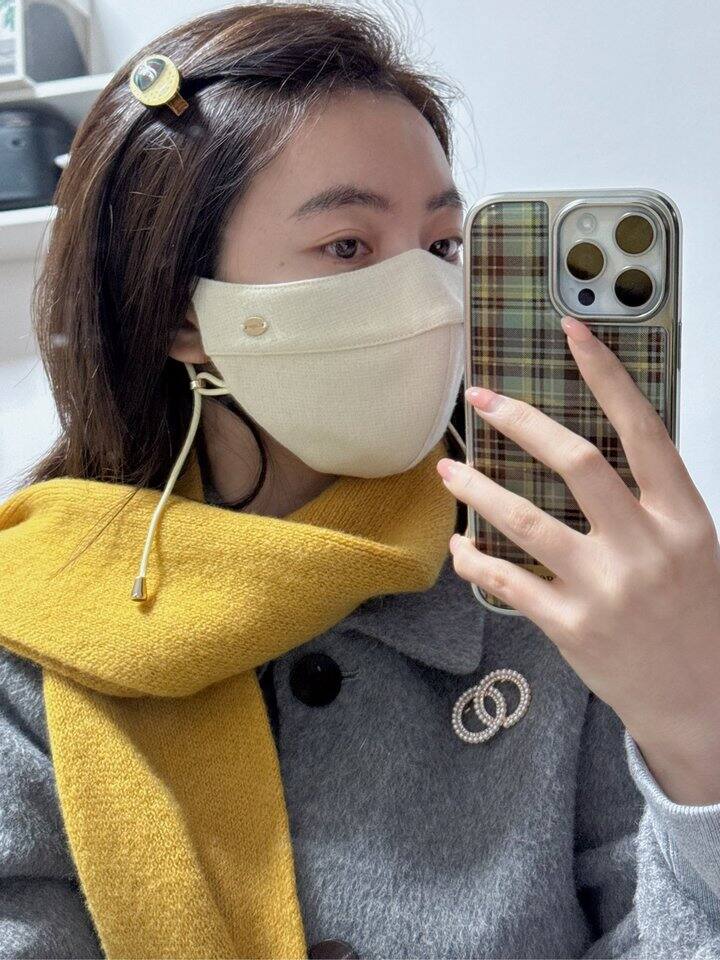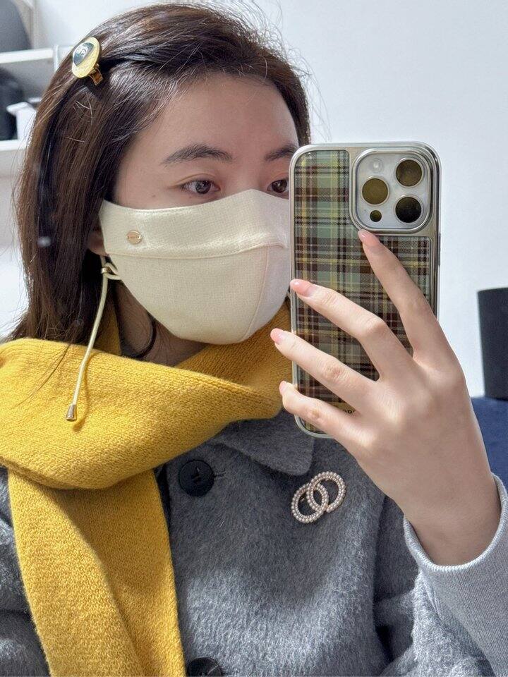 真的绝了这个口罩,外面羊毛内里真丝,无敌有质感,特别修饰脸型!!!想焊死在脸上[鹿笑哭][鹿笑哭]珍珠白好温柔,收口处也很有心机了,金属质感的配件特别棒,哈哈哈哈看到素颜神器我还以为智商税,等我找蓝够店主整个团价,差点就错过它