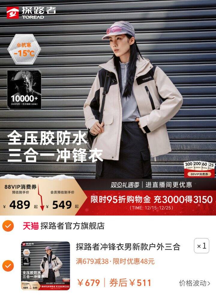 1、探路者三合一冲锋衣经典2. 0:https://m.tb.cn/h.7Uzm2yE弹89礼金,淘金币页面加购抵扣39