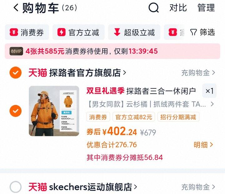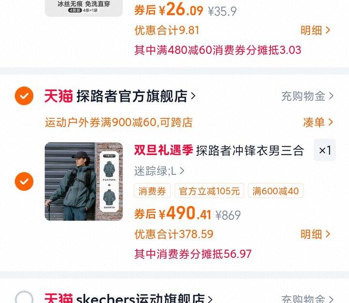 1、极地白】探路者冲锋衣https://m.tb.cn/h.7fHvPjr弹91礼金,淘金币页面加购抵扣33