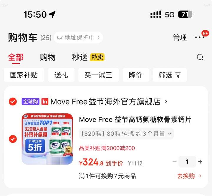 1,Move Free 益节高钙氨糖软骨素钙片80粒*4瓶 约3个月量