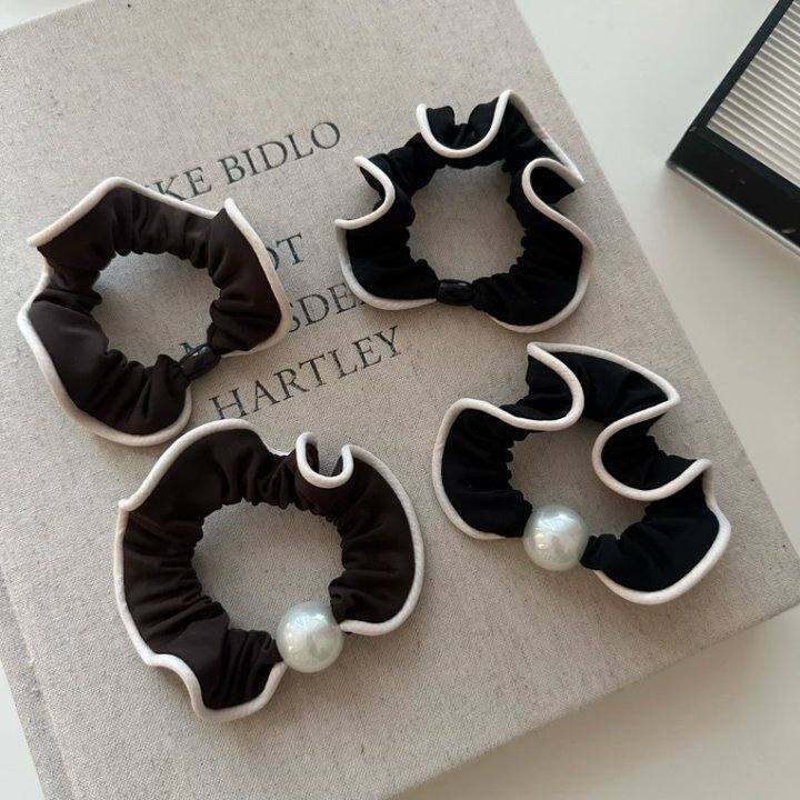韩系木耳边珍珠小肠发圈女新款慵懒覆古不伤发低马尾皮筋扎头发绳