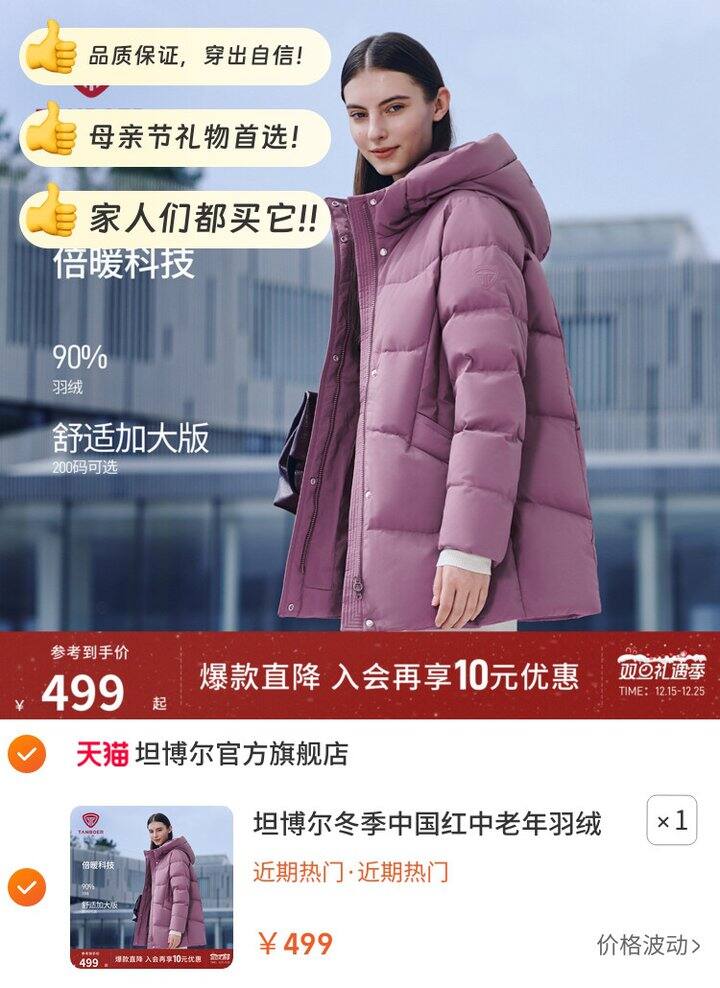 1、坦博尔冬季中国红中老年羽绒服妈妈款中长款连帽蓄热科技保暖外套https://m.tb.cn/h.7UWv2Wp弹99礼金,淘金币页面加购