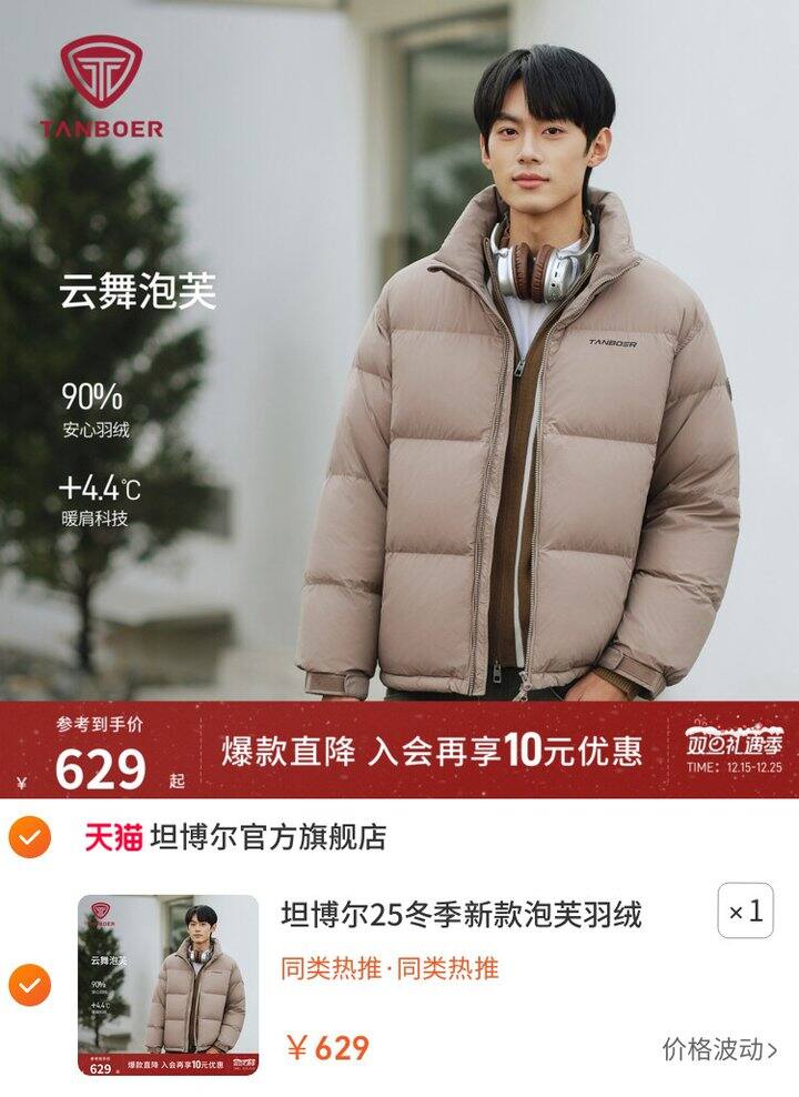 1、坦博尔25冬季新款泡芙羽绒服男女同款面包服保暖立领情侣款厚外套https://m.tb.cn/h.7fIcCf3弹125礼金,淘金币页面加购
