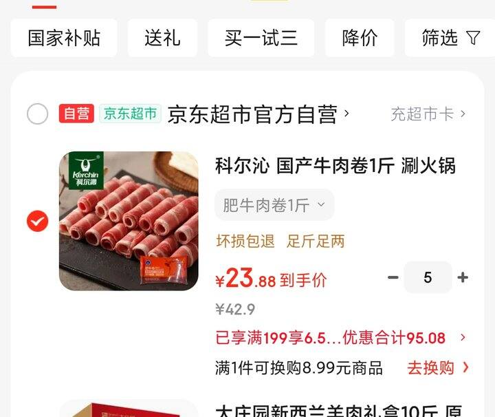 1、科尔沁 国产牛肉卷1斤 涮火锅食材: