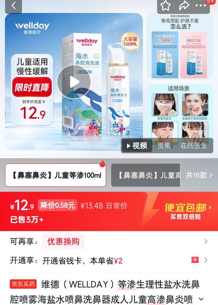 ❷生理性盐水鼻喷(拍2瓶)【17.8】