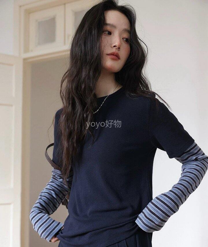 万能打底!这件撞色条纹假两件也太好看了