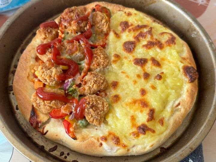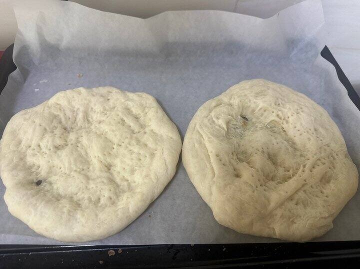 ⬇️多烤了两个面饼,速冻起来,下次想吃直接铺上芝士和菜就可以了。还有,新疆面粉是真的比较香,这次用的是金龙鱼面粉比较一般