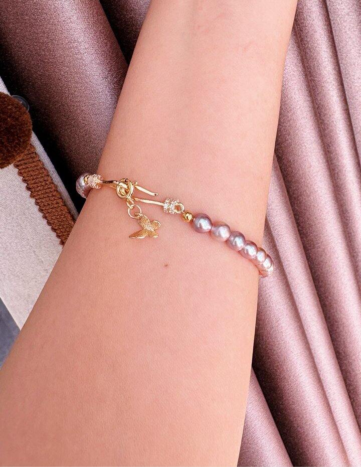 加了一个带活扣的蝴蝶小滴溜,可以摘下来卡在整条手链的任意位置。
