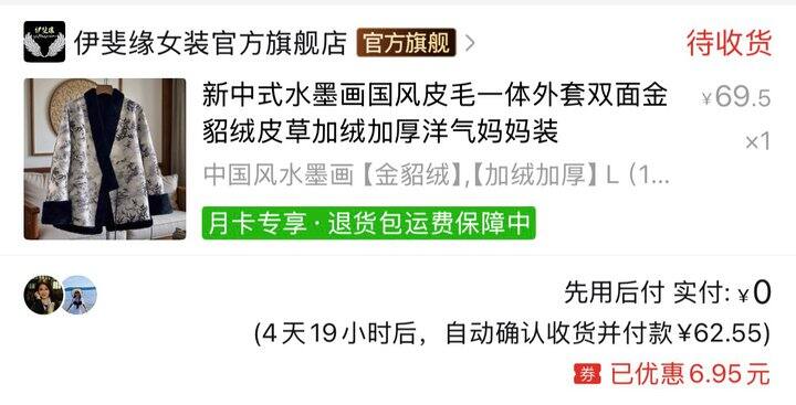 pdd女装:新中式水墨画国风皮毛一体外套双面💰60