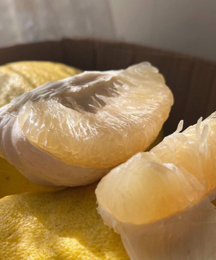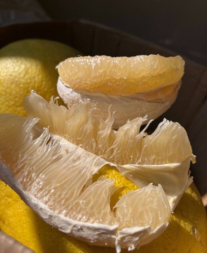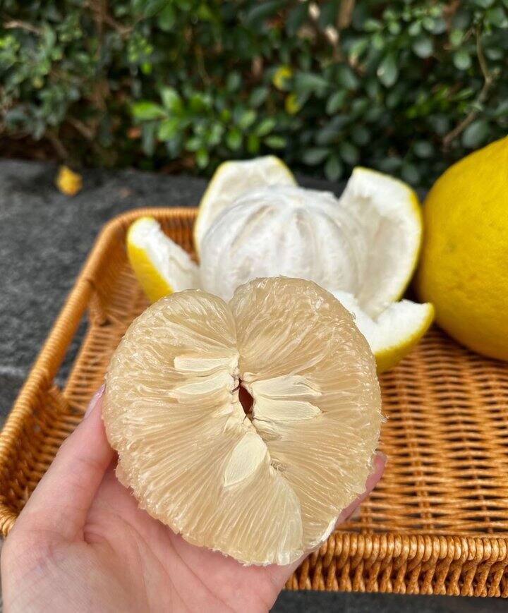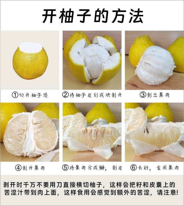 温馨提示:开柚方法奉上⚠️千万不要用刀直接切开,避免皮囊+籽壳上的苦味接触到果肉。沙田柚储存一个月以后,外皮开始会起皱,但是肉质更甜,香味更清香🥰有不一样的内涵和厚重感。 储存方法如下⬇️⬇️⬇️