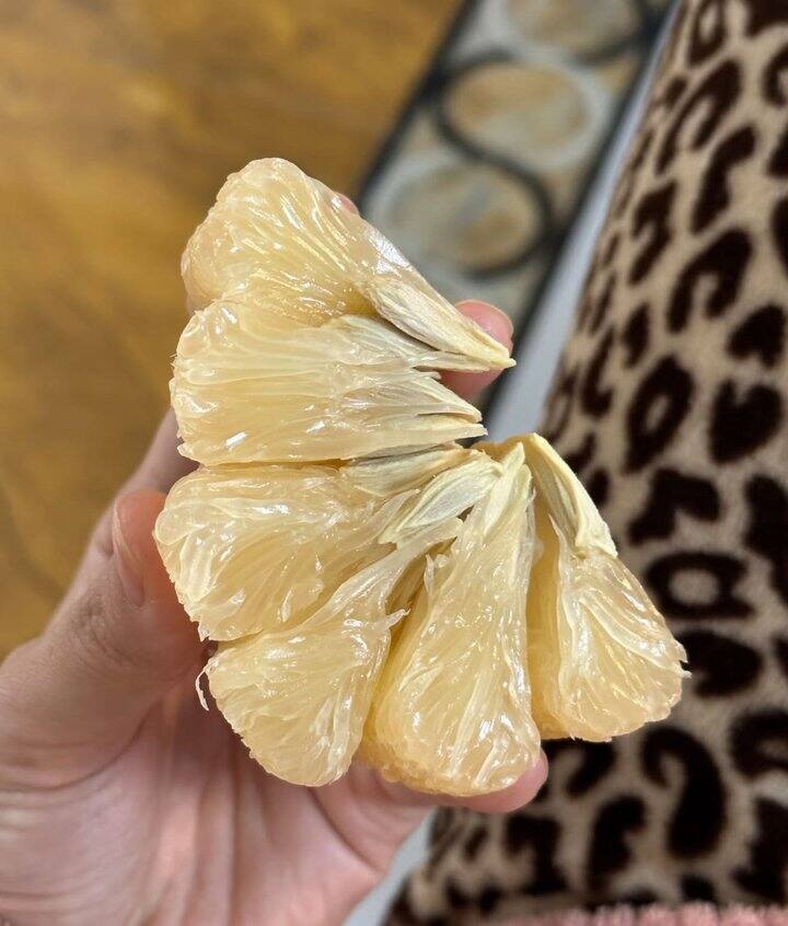 这沙田柚越放水份越多,因为放常温辞水会自然糖化,还会更的更甜,就像番薯一个原理,越放越甜