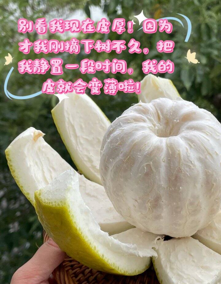 由于我们现在发的柚子是11月20日之后摘的,辞水时间还不是很够,所以亲们收到后可以放一放再吃的,柚子是很耐放的,放到皮皱皱的完全回糖就很好吃了,沙田柚是越放越好吃的哦(沙田柚没有不新鲜的说法)~