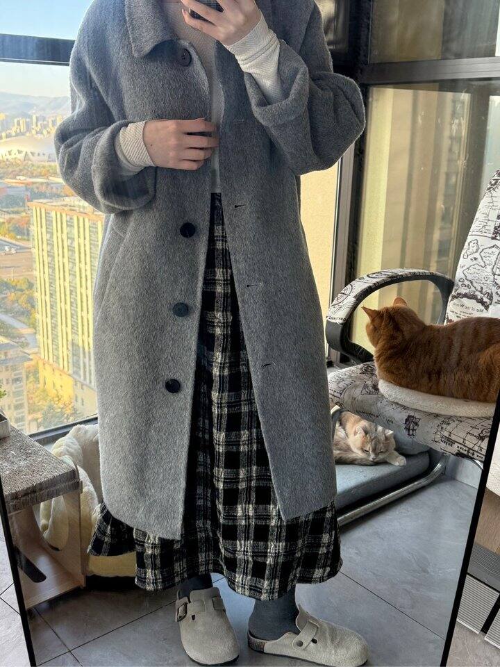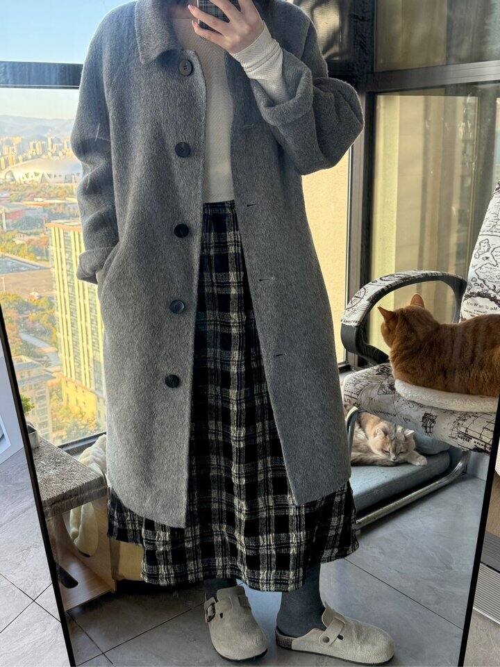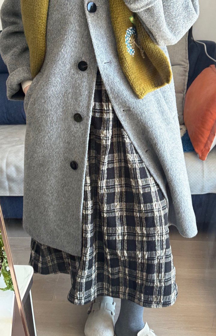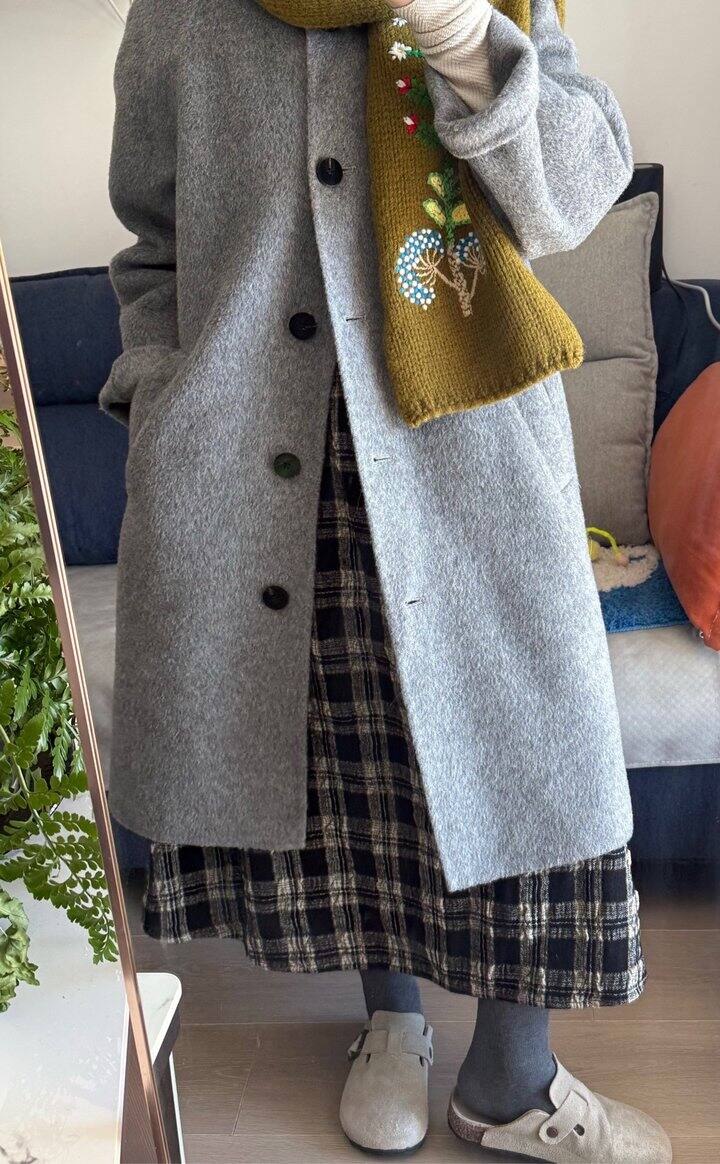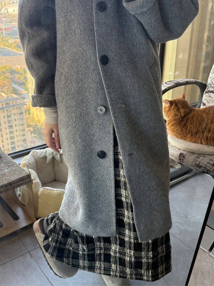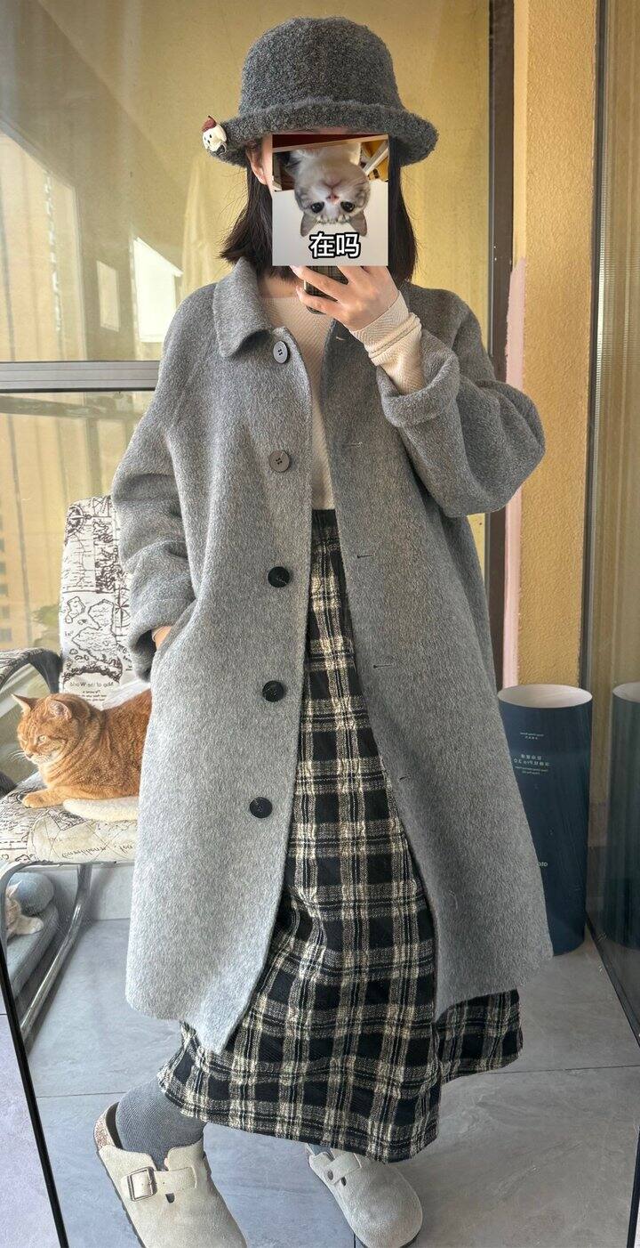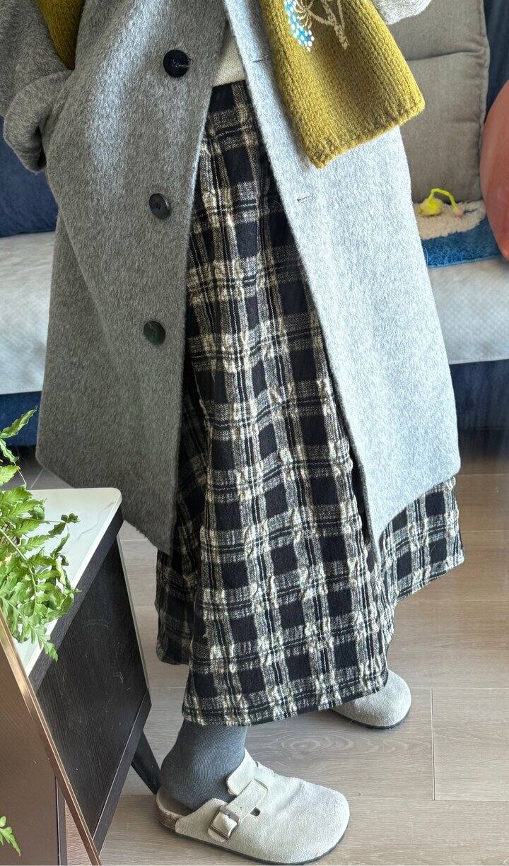 有点肌理感,挺百搭的,黑灰调带点棕色格,我的大衣几乎都能用上,听店主说是漂浮记家的,他家卖528是真狠啊,臻衣莱170多还可以接受