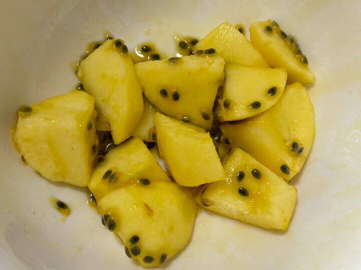 ⬇️苹果+百香果,盐、蜂蜜,然后冷藏一会。