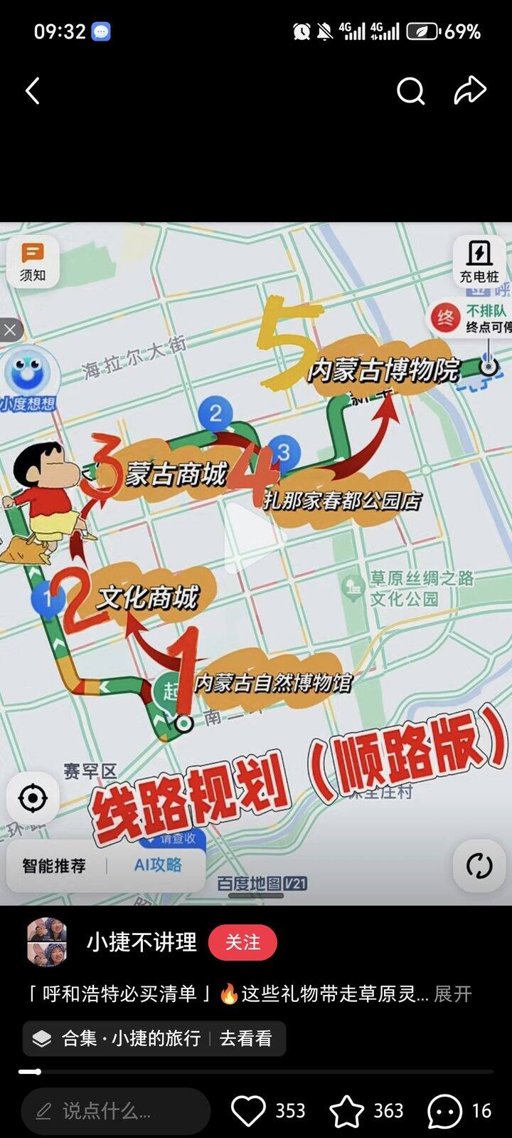 下高铁,德顺源烧麦(还可以,是好吃的,但是不是惊艳那种)-席力图召门票 25-大召无量寺门票 35(两个寺庙我觉得去一个就行)-塞上老街(挺同质化的,就有两家皮包店比较独特,我也只是粗略逛,可能还有没发现的宝藏)-内蒙古自然博物馆(非常推荐,有最完整的恐龙化石,矿石展,动物展也很棒,免费,不用预约,带 id card 进)-宽巷子美食街(买了杨师傅焙子月饼,红糖焙子香香的,感觉就是红糖烧饼,清和园的奶皮子芝士饼不错,团购 6.8(我看小红书推荐星月糕点的奶皮子饼,但是排队太久了,没必要,感觉味道差不多)再走几步有一个卖糖葫芦的,葡萄糖葫芦 5 块,奶皮子葡萄糖葫芦 10 块,感觉比较划算,再走几步,吃了一个炸串不行别买)