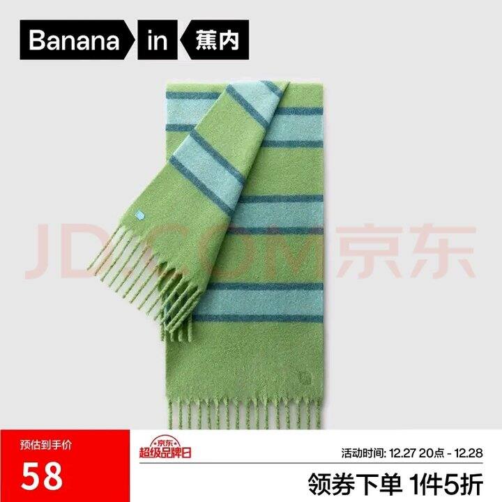 [闪耀]蕉内502Color女士流苏围巾拼色围脖披肩含羊毛条纹图案保暖发热