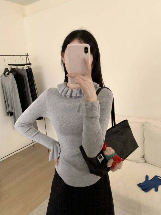 韩系花边领羊毛针织衫女高领打底衫2025新款设计感内搭显瘦高级感