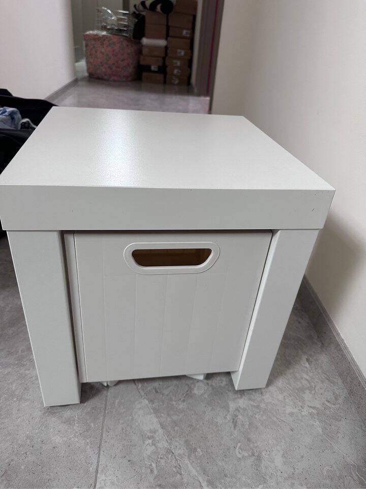 带轮子的收纳框+宜家小边桌