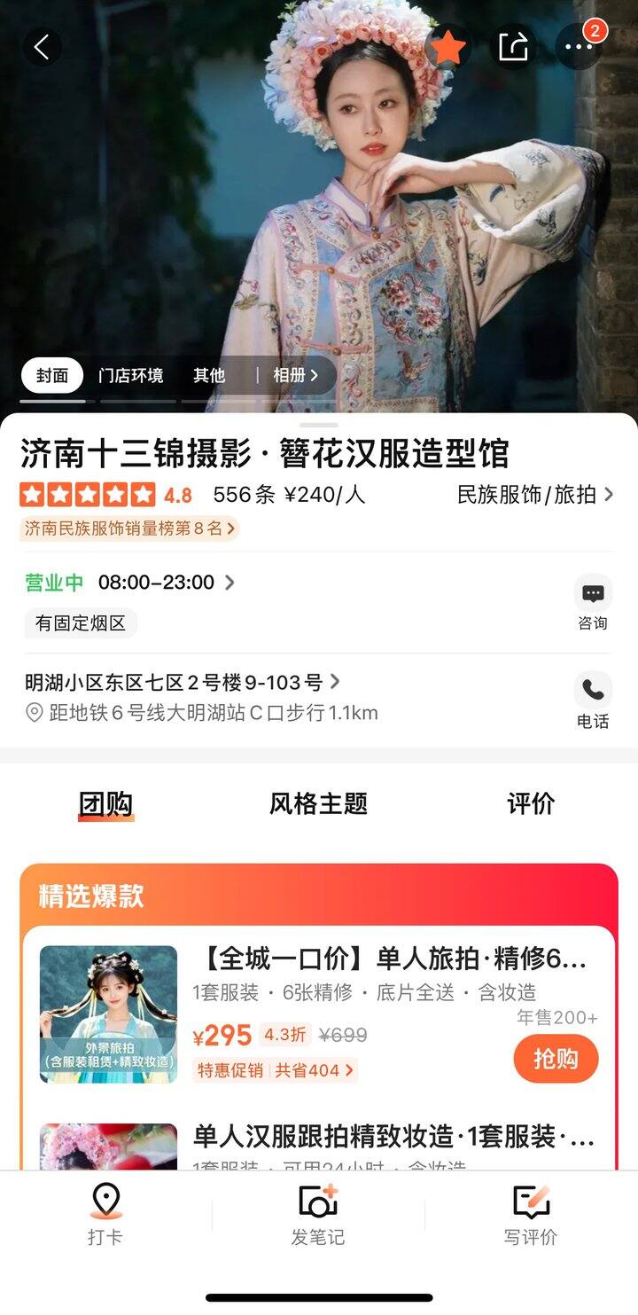 准备后天跟老妈去大明湖拍汉服,美团看了看基本都是299一人含普通妆造及跟拍一小时,送底片加六张精修。