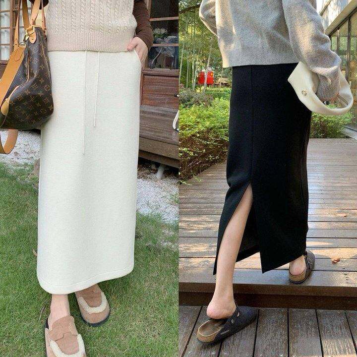 Seawhen海维恩 冬季气质通勤洋气显瘦垂感直筒裙羊毛半身裙3698