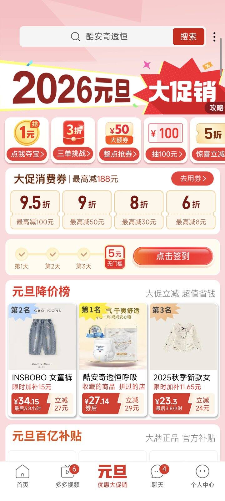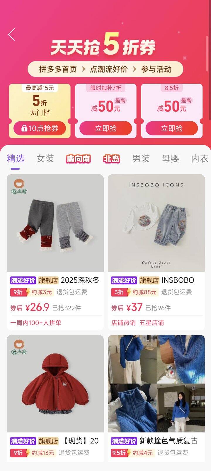 搜潮流好价进去每天有5折抵扣15元,买童装太香了,袜子内裤,等也特别好用。