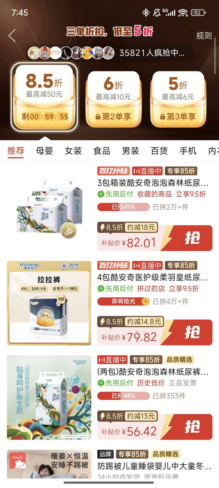 右边还经常有睡衣五折,服装加补7折等,而且这些折扣可以叠加111返现。