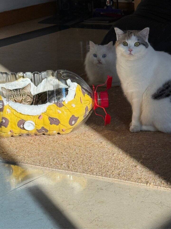 这个桶是19升的 就是那种饮水机的桶的大小,但是捏捏进不去,他进去了都没办法转身后腿也进不去[胖鹿捂脸]