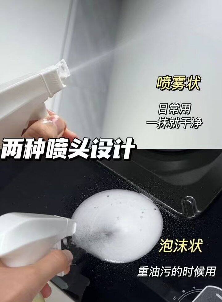 再重的油污一喷一擦就干净,每周一次厨房清洁很有必要,厨具的重油轻轻松松就搞定,喷上静置一会,一擦就干净了,特别是多年的污垢,清理完和新的一样!