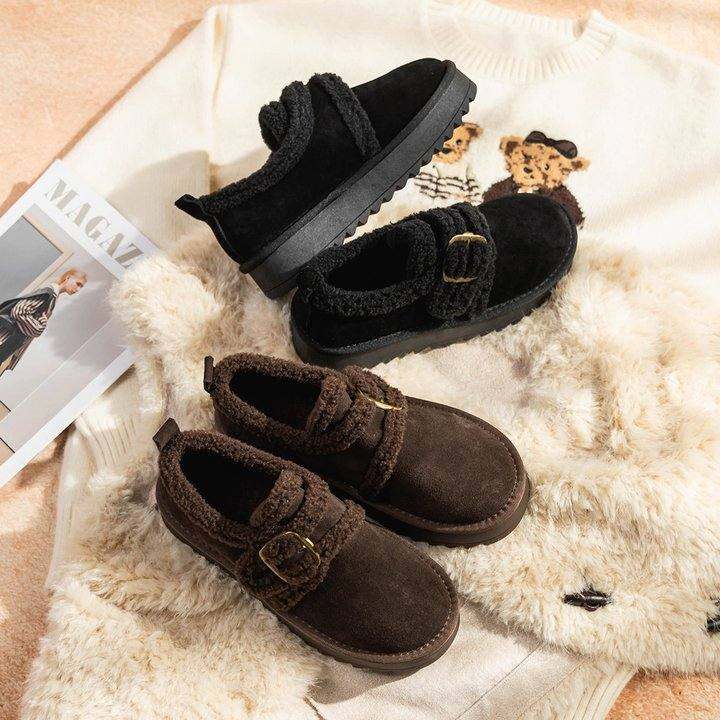 「余生缓」WM●大码 反绒皮加厚针织羊毛厚底棉鞋女保暖雪地靴冬