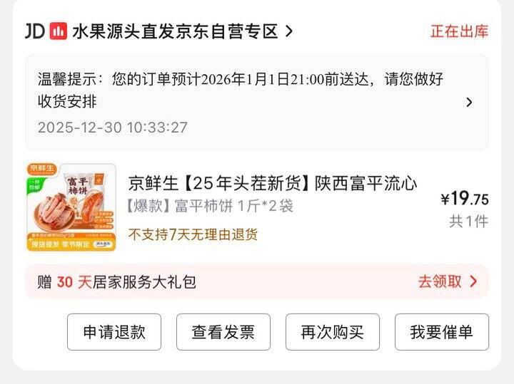 京鲜生陕西富平流心柿饼独立装2斤 1斤*2袋源头直发