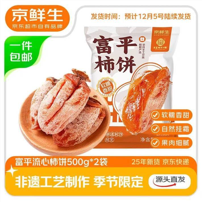 【🚚自营包邮】京鲜生 陕西富平流心柿饼 500g*2袋
