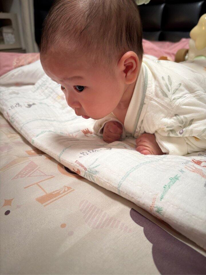 2个多月晃晃悠悠趴着,一直倒向右边,xhs查都说是斜颈紧张到不行,准备3个月体检去查一下。结果正正好是90天这一天突然就趴的特别稳当了一点都不倒。