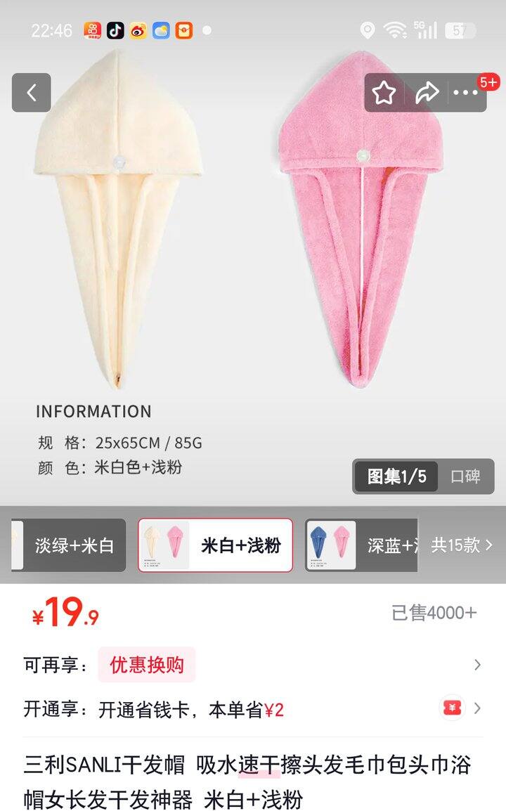 ❹干发帽𝟐条【9.9】