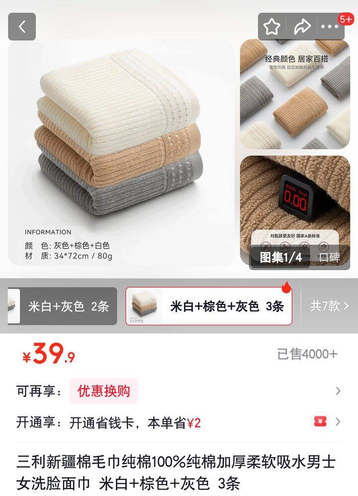 ❸新疆棉毛巾𝟑条【19.9】