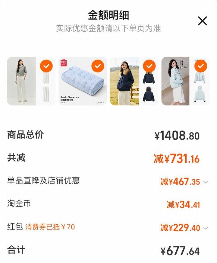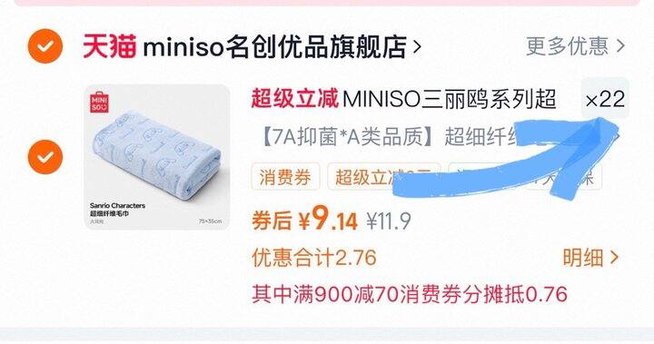 例如900-70的消费券就加购22件