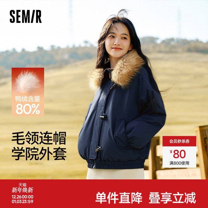 203💰森马学院风牛角扣羽绒服