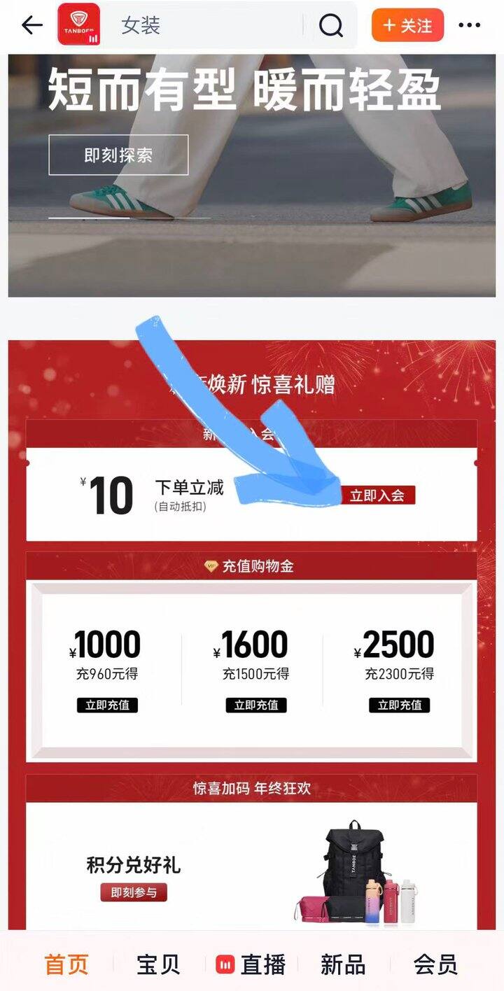 ❹店铺首页入会领10r会员券